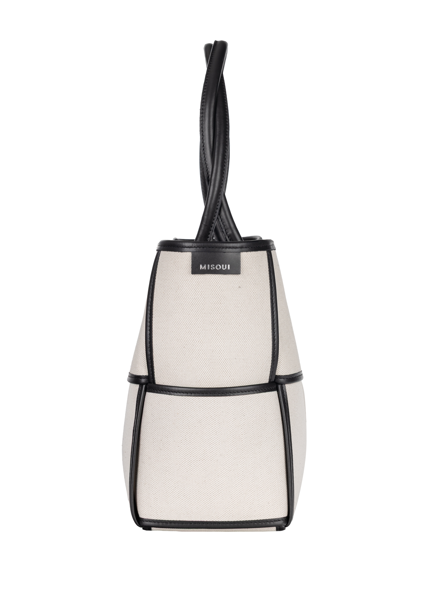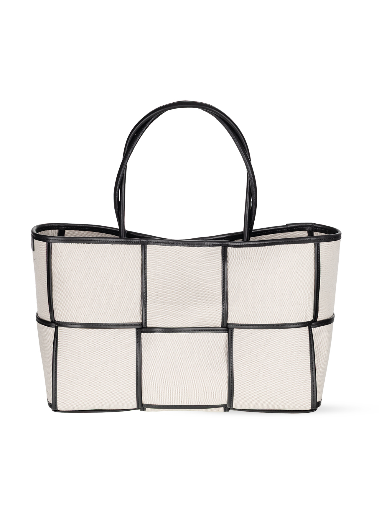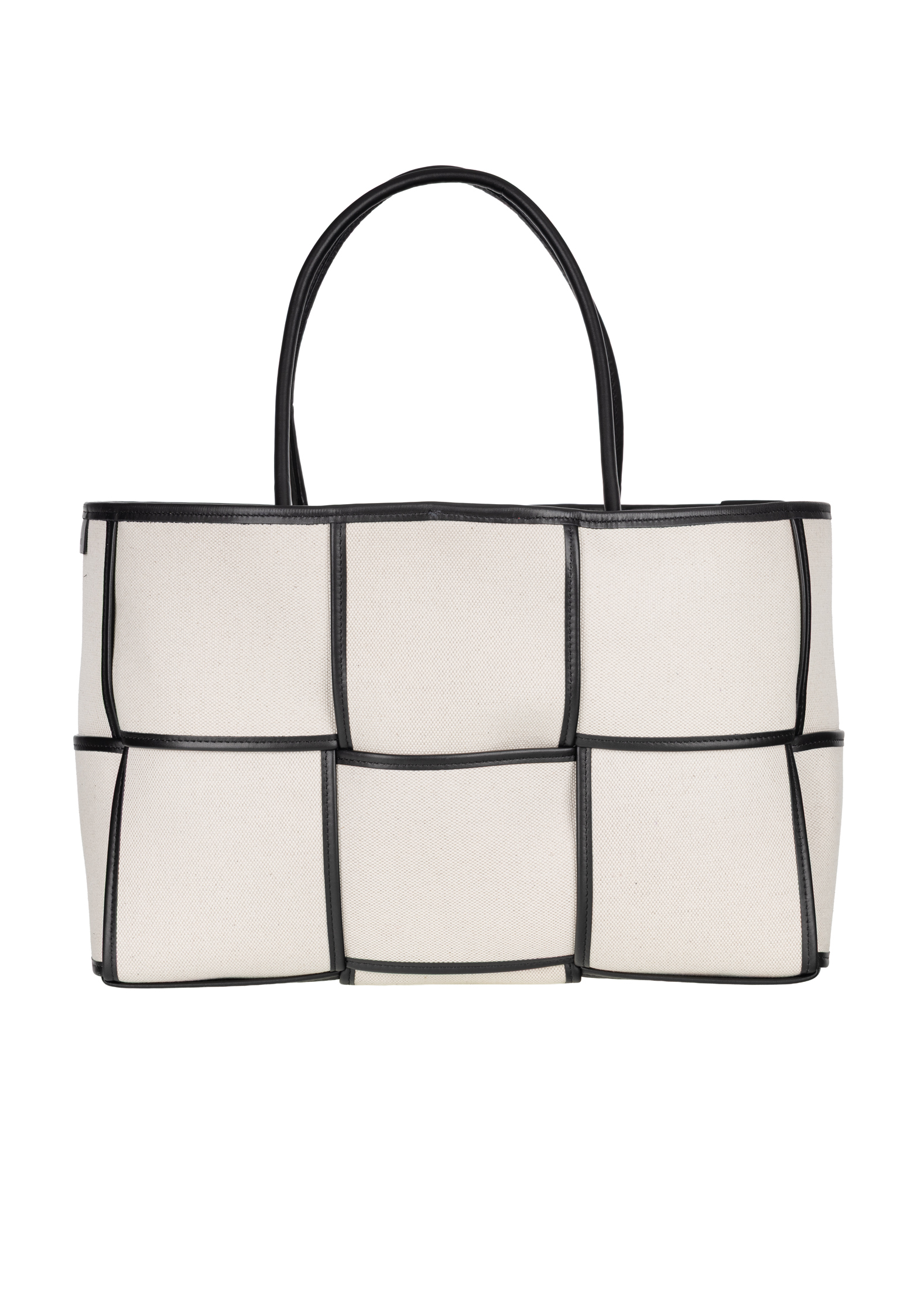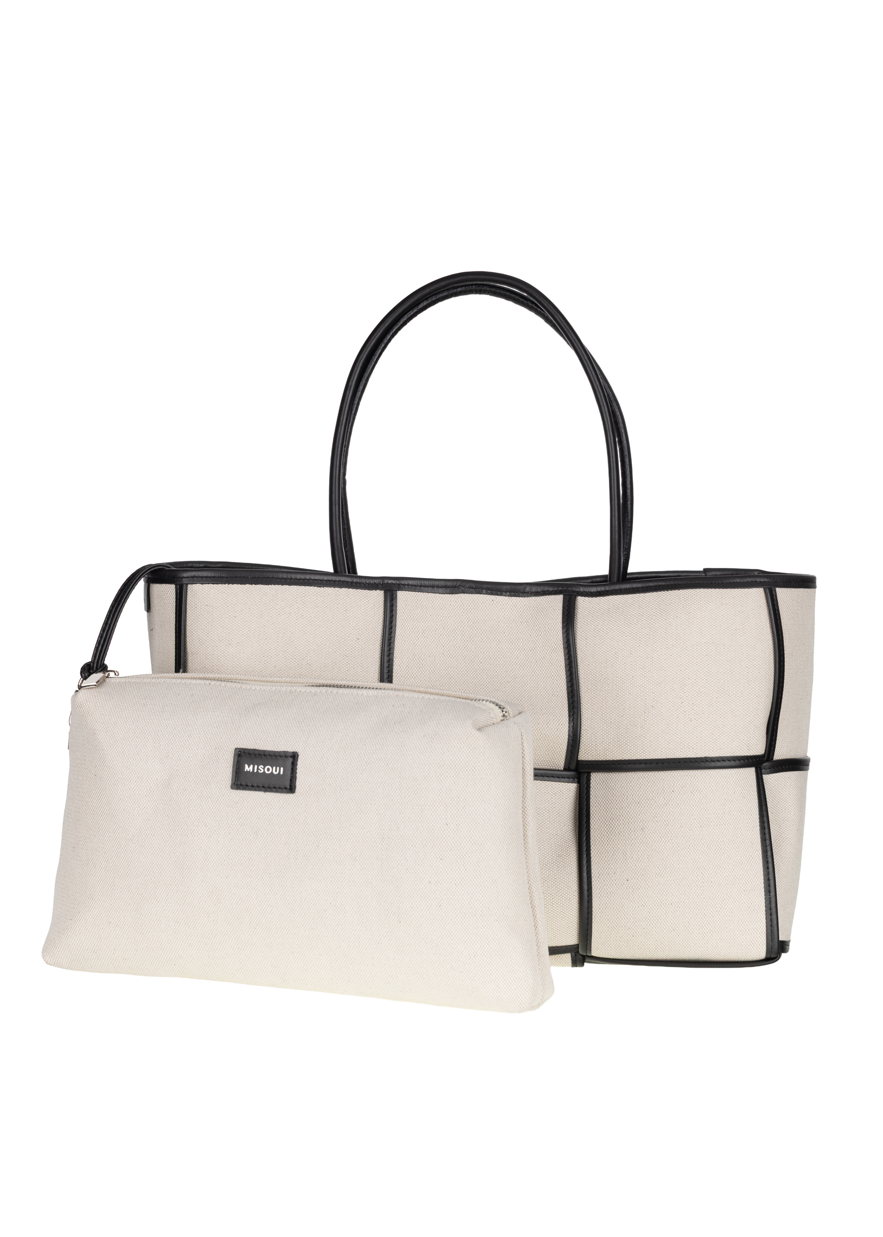 Crafted from high-quality canvas, a blend of cotton and linen, it delights with its natural texture and subtle elegance. Its geometric shape is emphasised by contrasting leather trims, which give it a distinctive look and an architectural feel. Despite its striking design, the bag remains exceptionally lightweight, making it perfect for everyday use. Inside, there is a large, practical cosmetic bag that helps you stay organised and conveniently store all your essentials.