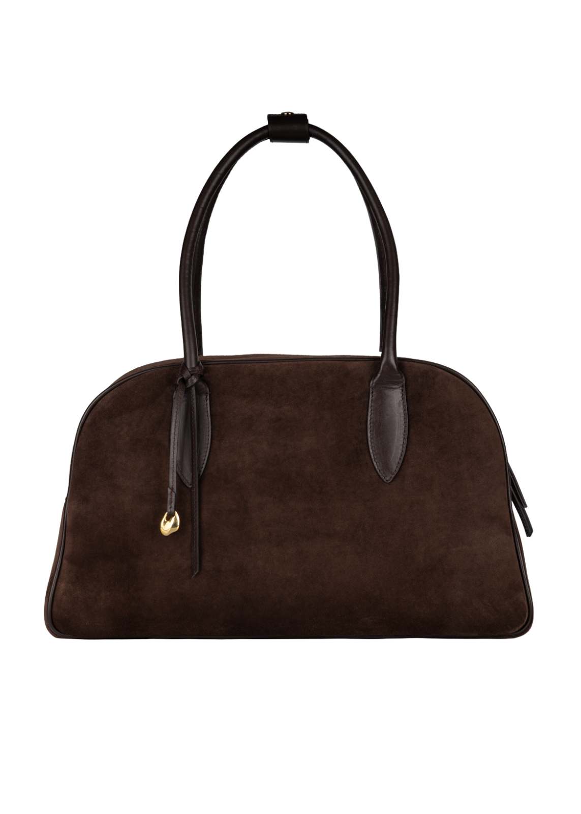 A large-sized bowling bag from the civ:elle collection for the fall-winter 2025/26 season. Its extensive form makes it an excellent option as an office bag, mum bag or an elegant form of luggage for a weekend trip out of town. It will accommodate everything you dream of and more. For active women who value high-quality design but also comfort - without compromise. Comes with a pendant with an organic shape, handmade by a jeweler artist, available in two shades: silver and gold.